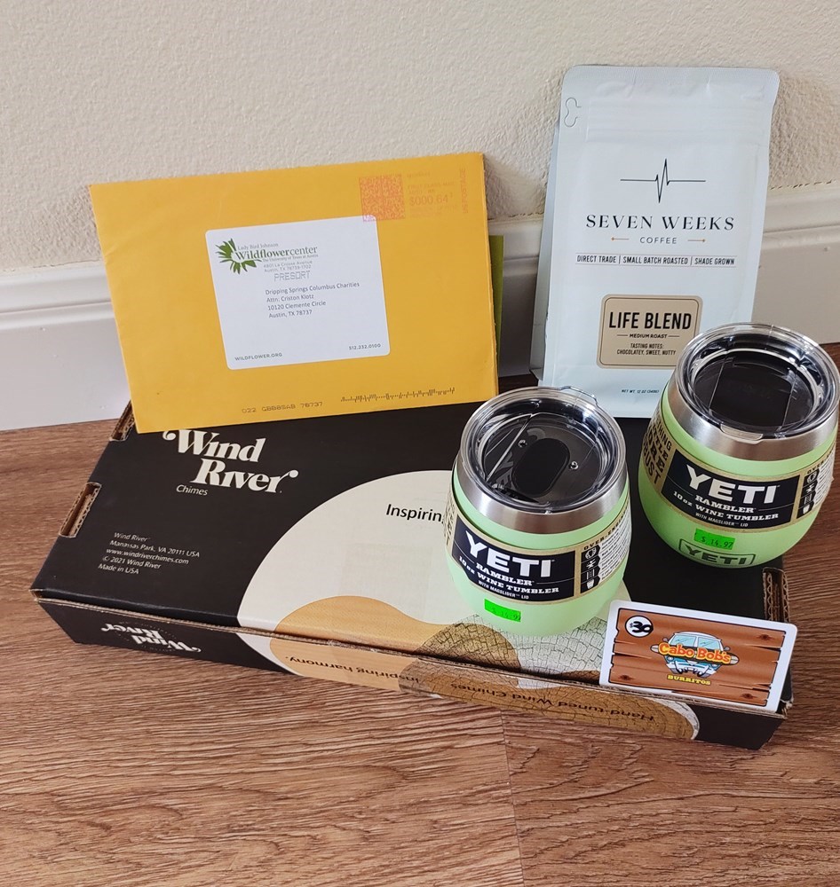A note from Dripping Springs Columbus Charities, Inc.: Thank you for bidding in our online auction. We appreciate your support!